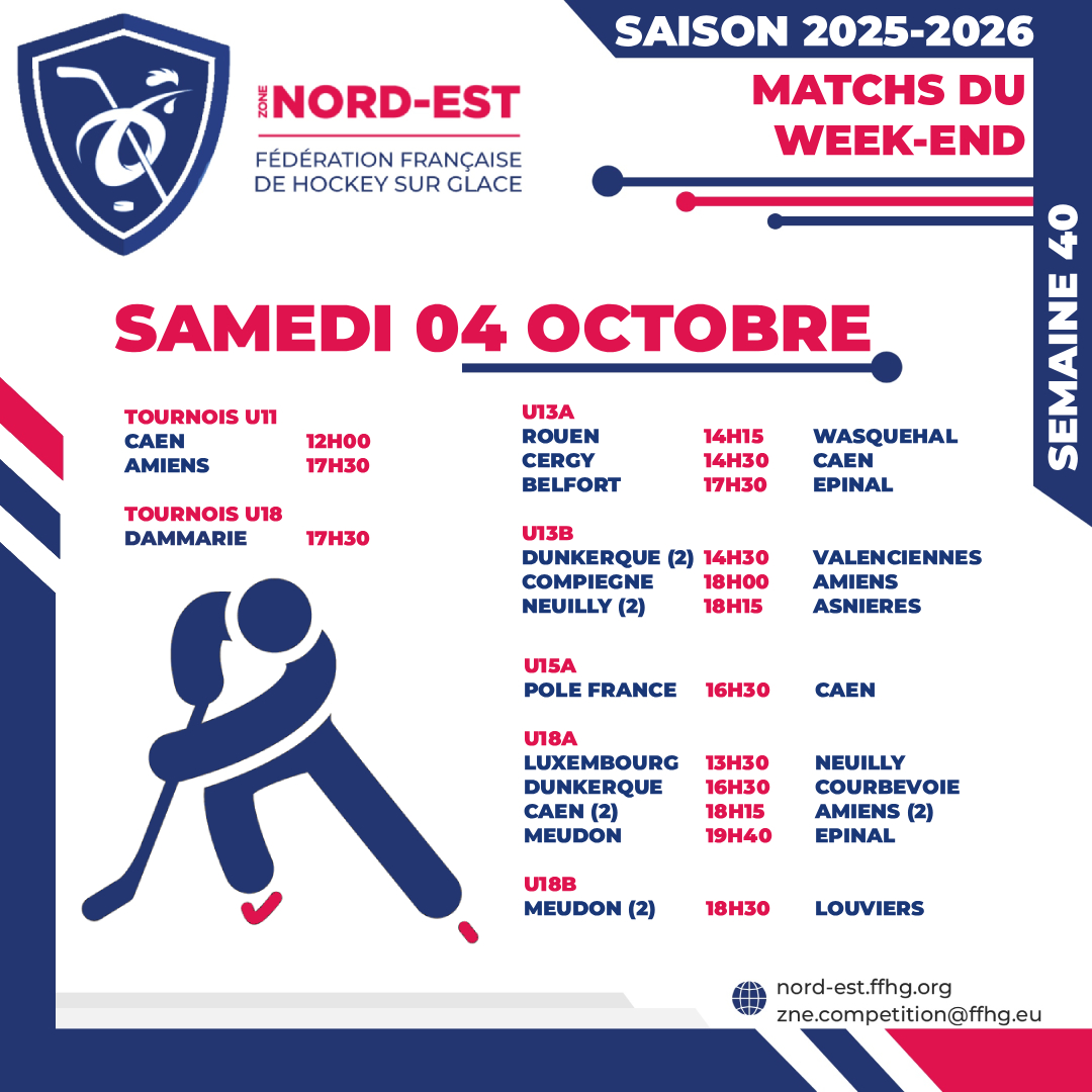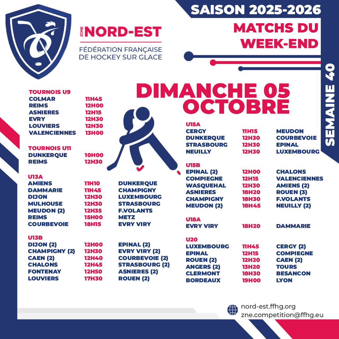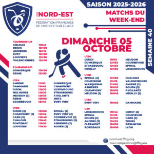 Moins de tournois, plus de matchs, c’est la revendication de ce premier week-end d’octobre pour la Zone Nord-Est avec un cortège de 42 rencontres pour 11 tournois. Alors que les U9 s’en donneront à cœur joie sur la glace avec six tournois dominicaux positionnés, dans les championnats, la part belle sera donnée aux U13 et aux U15 sur tous les fronts tandis qu’en U20, avec six matchs à négocier, le classement actuel risque de vivre une intense contestation. Pas de piquet de grève dans la ZNE pour ce week-end, tour d’horizon des affaires à suivre.